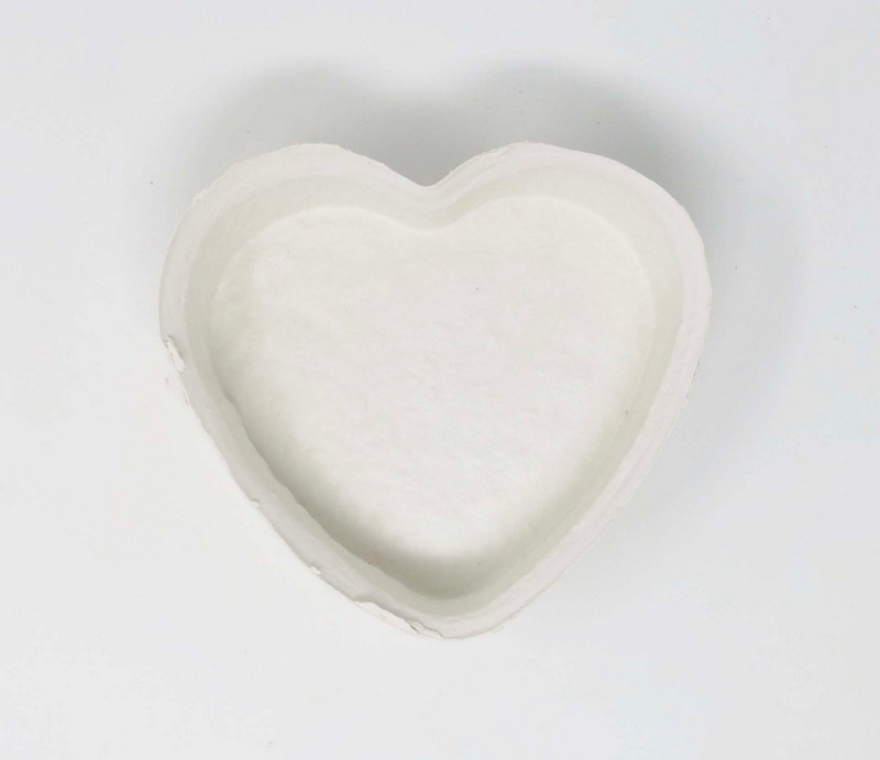 Allow the heart bowl casting to completely dry out. The maché will become whiter and whiter in color as it continues to dry out.