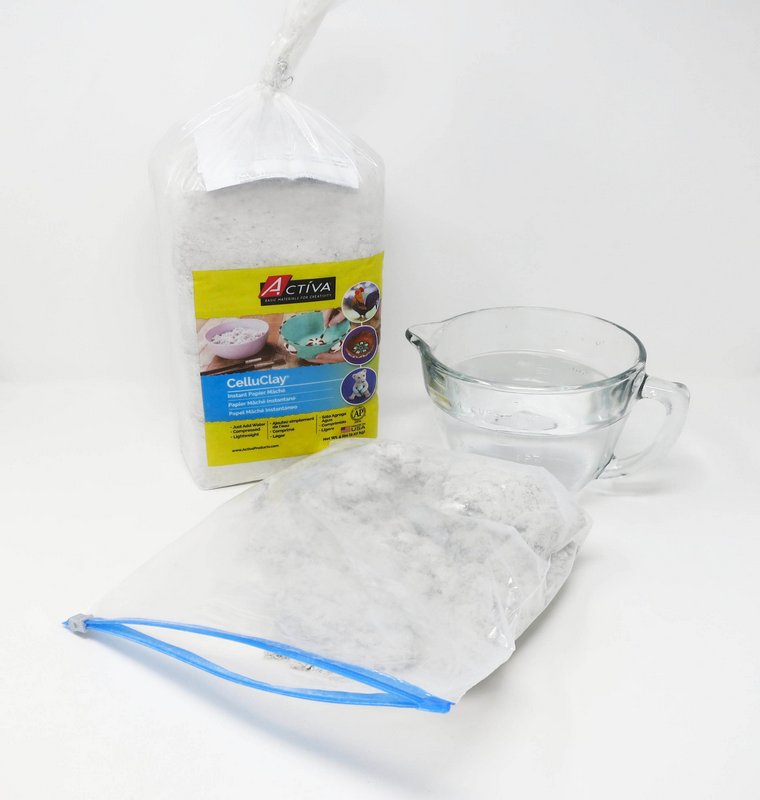 Add 32oz. of warm water to 1 lb. of CelluClay, mixing in a zip top bag.