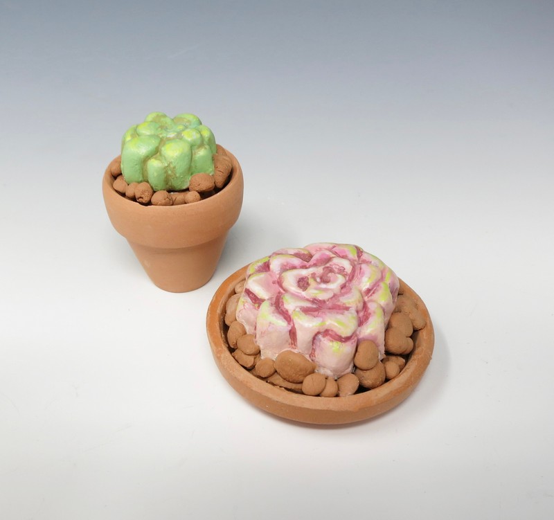 Roll small spheres of clay and place them around each succulent in the arrangement.